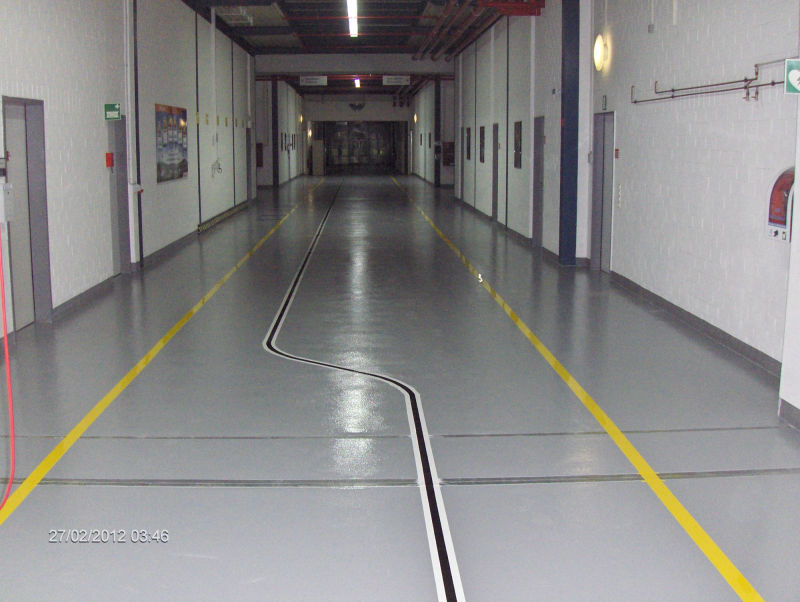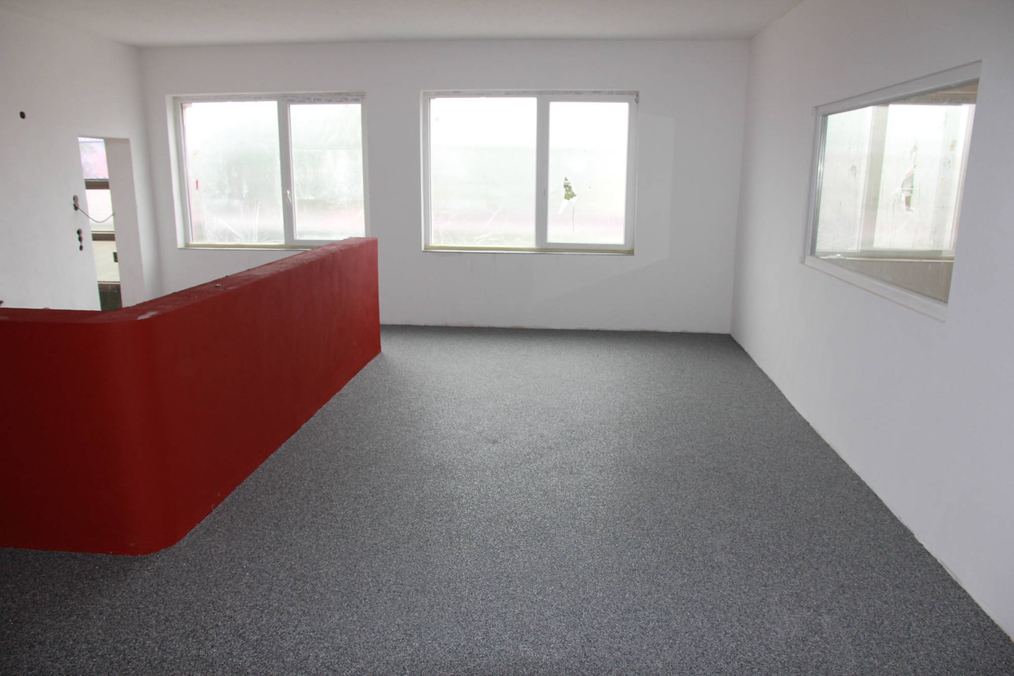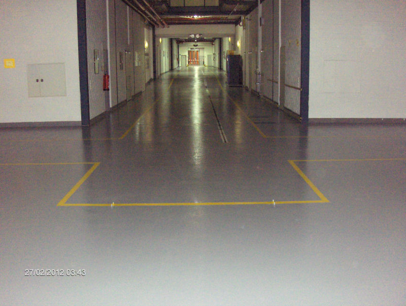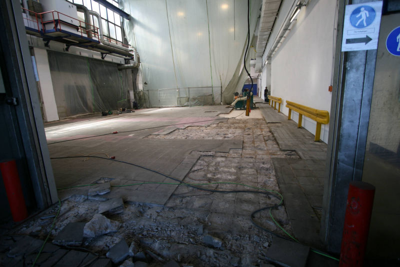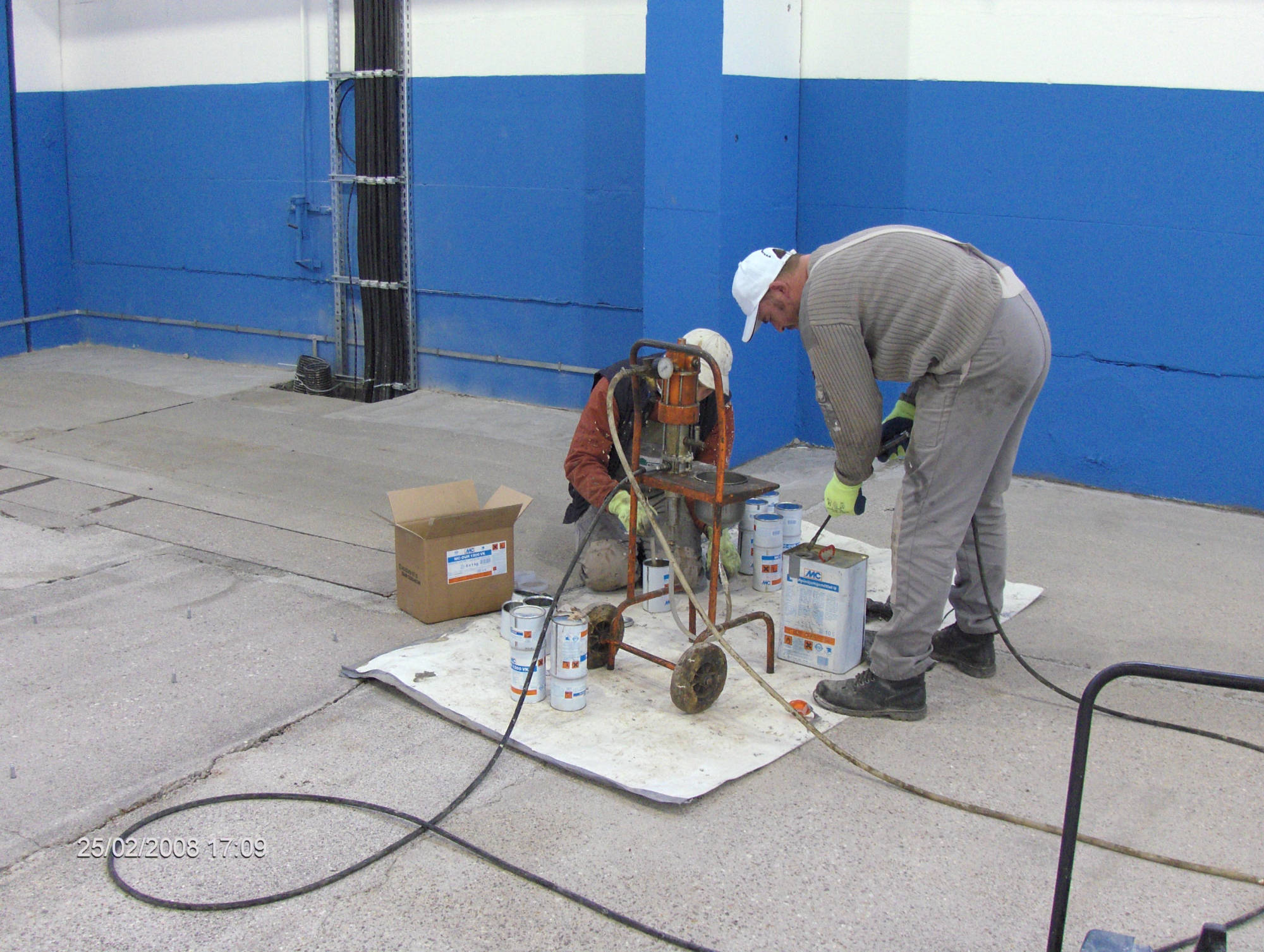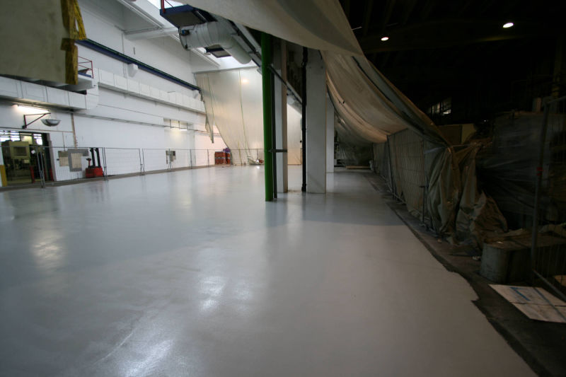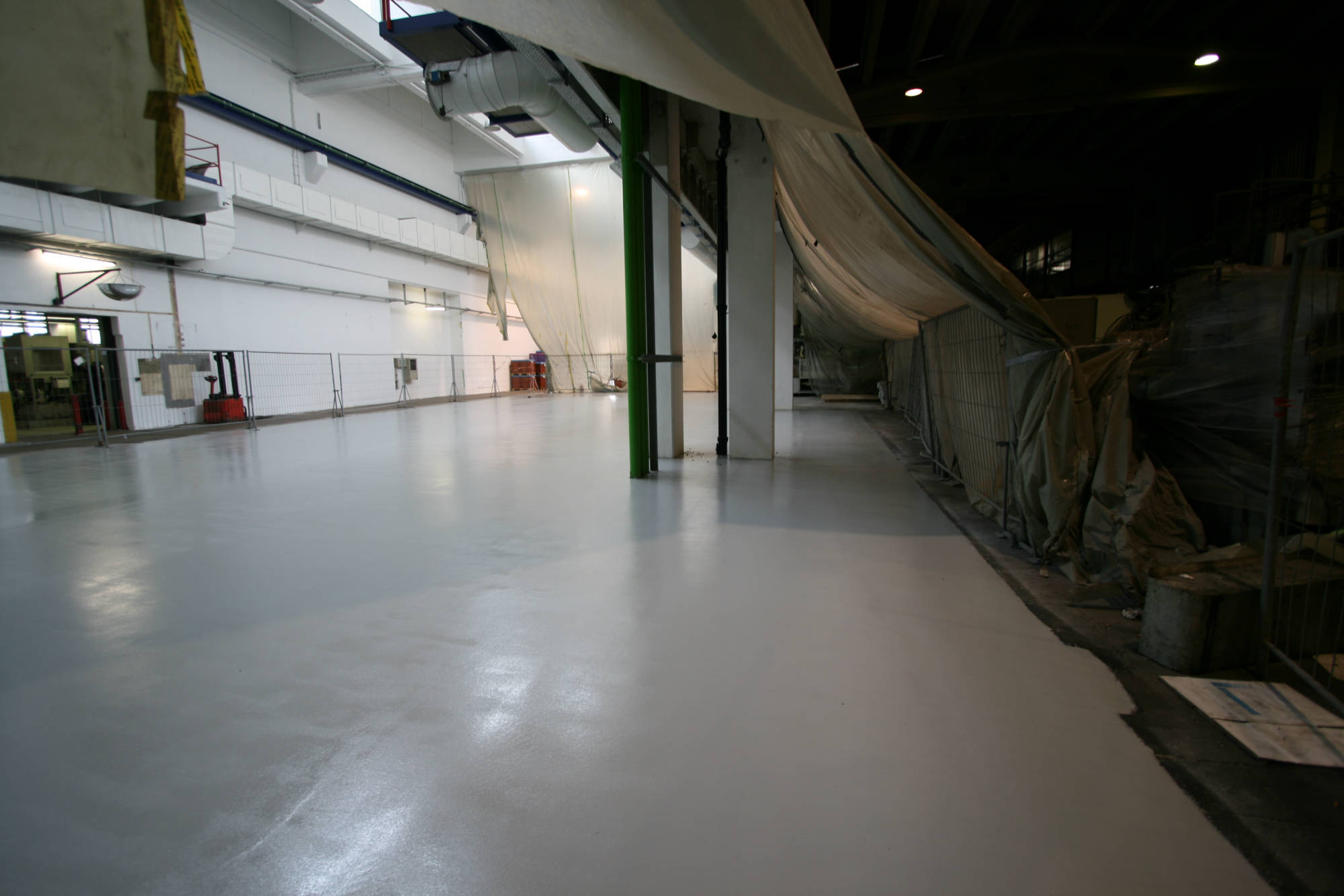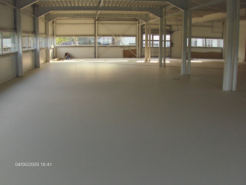 2. Bauabschnitt, Platten und Beton werden überbeschichtet mit Kunstharzmörtel