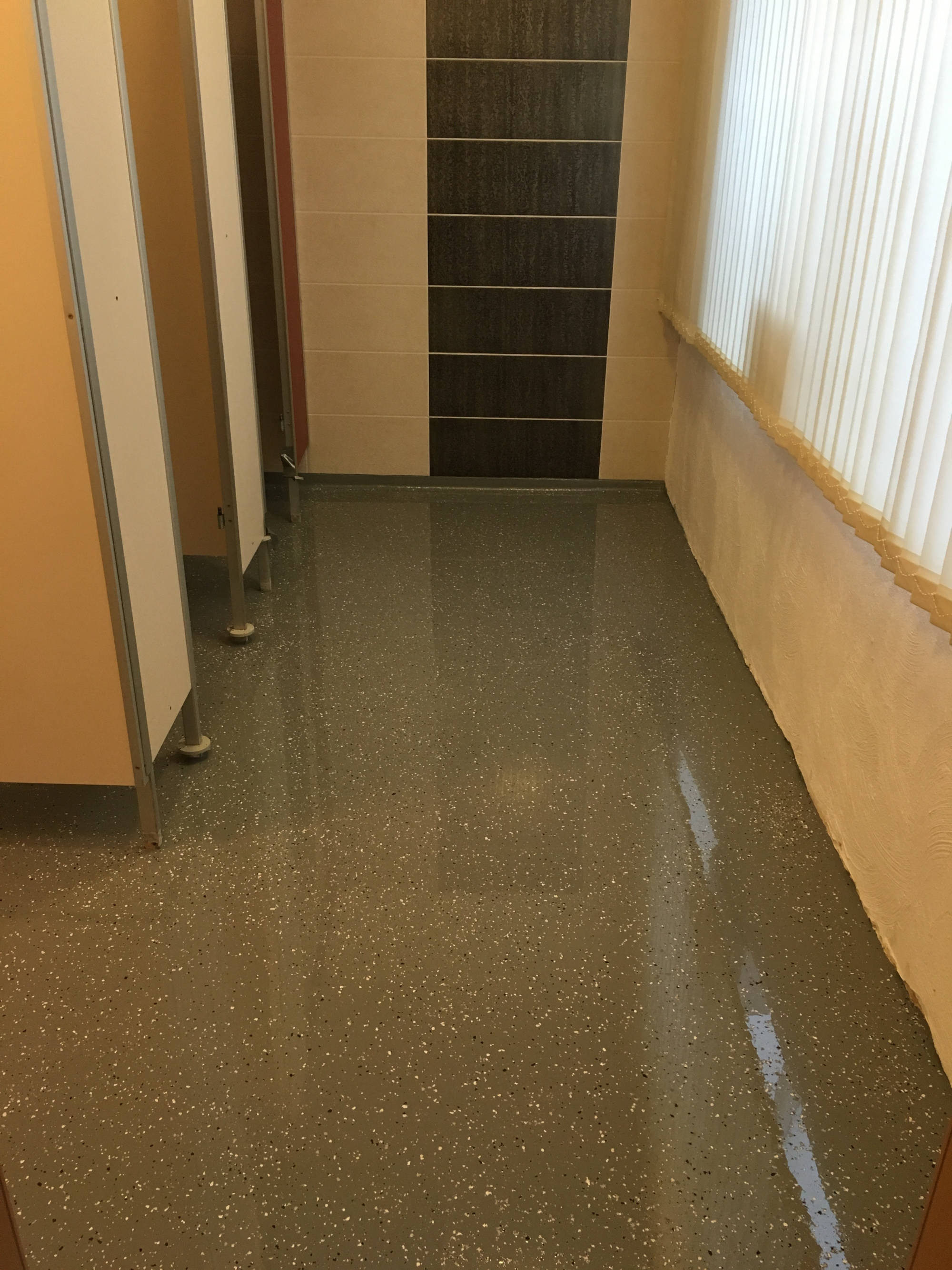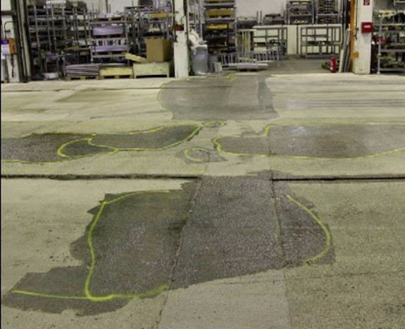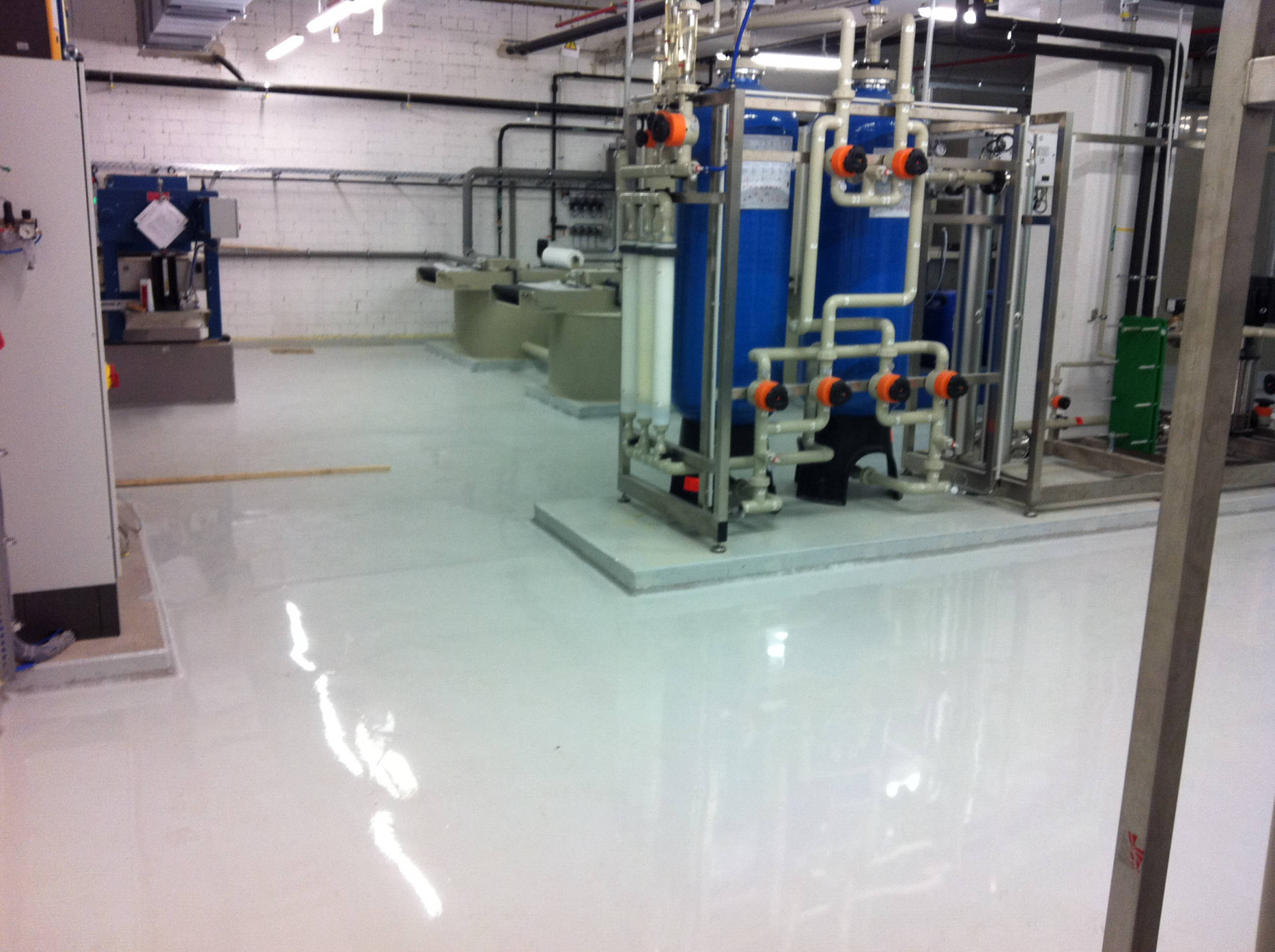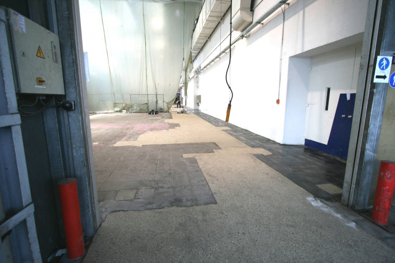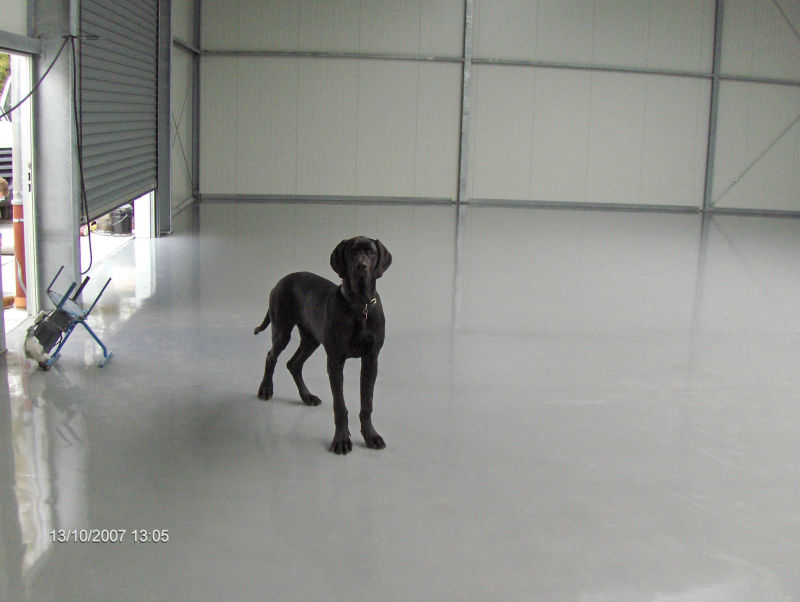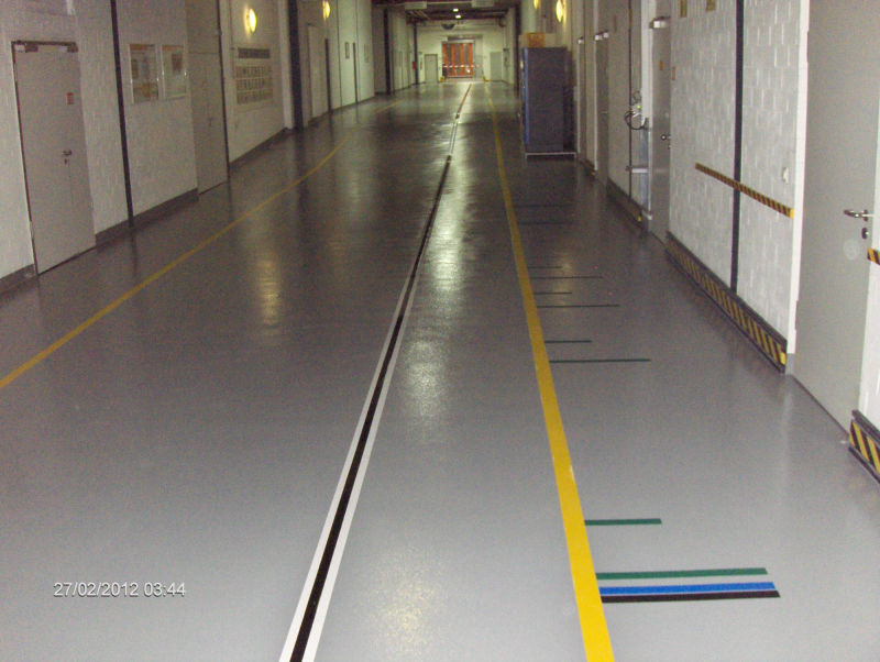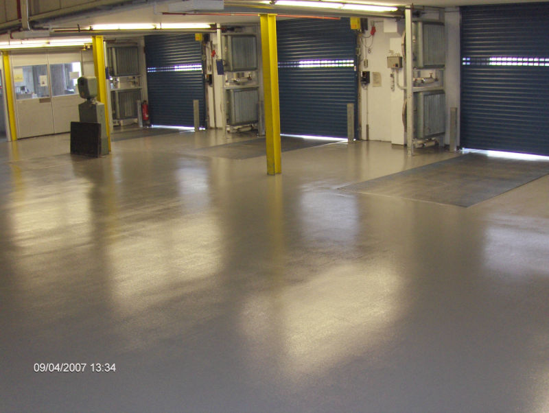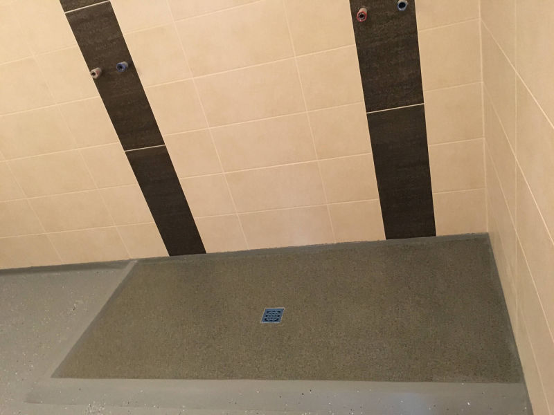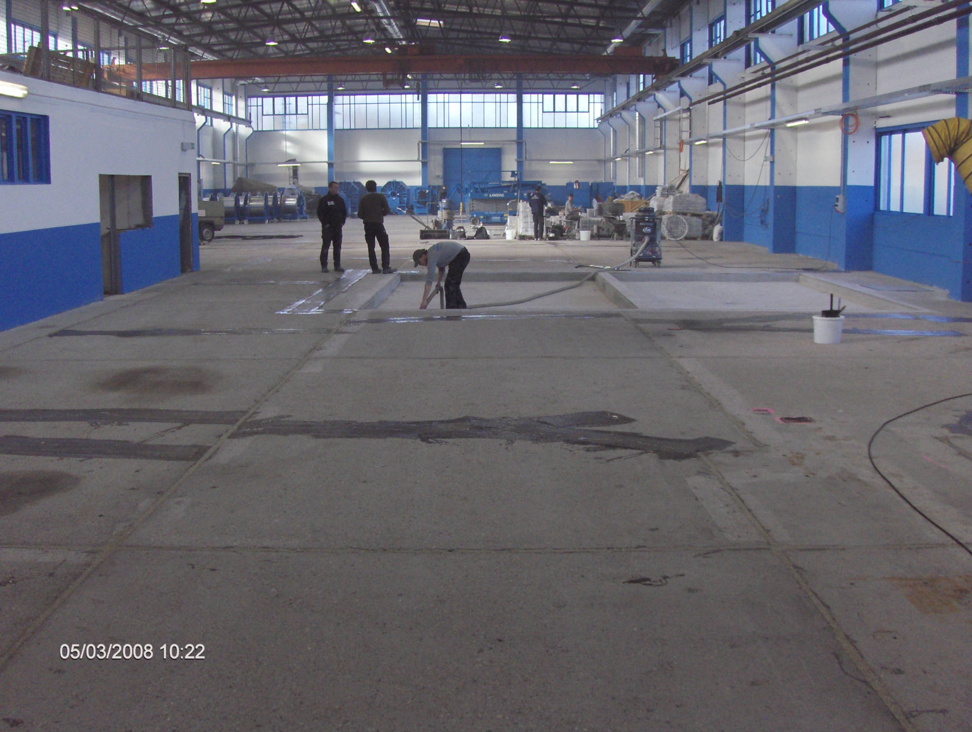 2. Bauabschnitt, Platten und Beton werden überbeschichtet mit Kunstharzmörtel