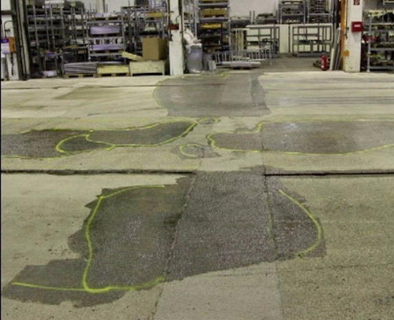 Vorher - Betonplatten mit Bitumenfugen, hohe Unebenheit